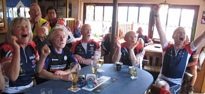 Moskau, Istanbul, Lissabon, Jalta, Dublin, Tallinn, Venedig, Palermo – die Euroradler spielen bereits in der ersten Liga. Mit der Nordkapfahrt 2009 gibt es jetzt das „i“-Tüpfelchen oben drauf. Und dort wo wir Euroradler sind, da wollten am Sonntag natürlich auch die 05er aus Mainz hin. Giesela hatte einen Wunsch – beim Aufstieg der Mainzer dabei zu sein. Im Stadion, das ging nicht – schließlich sind wir in der Lüneburger Heide unterwegs. Über Radio und „Knopf im Ohr“ war auch keine berauschende Idee. Also was tun? Für jedes Problem haben die Euroradler eine Lösung. Am Samstag (spät abends) ein wenig recherchieren und herausfinden wo es eine „Sportsbar“ gibt. Dann berechnen wo man etwa gegen 15 Uhr sein wird (zumindest die zweite Halbzeit sollte es sein) und am Sonntagvormittag telefonieren.