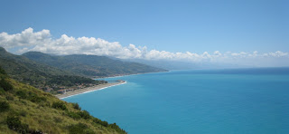 In der Nacht hatte es noch einmal geregnet. Es war richtig kühl, als wir uns – nach einem guten Frühstück – auf den Weg nach Südwesten machten. Noch hatten wir unsere Radwesten über den Trikots und an manchen Beinen bildete sich eine Gänsehaut – ob von der morgendlichen Kühle oder den letzten Tunneldurchfahrten – blieb letztlich unbeantwortet. Mit jedem Kilometer wurde es aber wärmer und die Spannung stieg. Dann, kurz vor Praia a Mare, ein Schrei: „Da ist es“ und wenig später: „Jetzt bieg doch mal rechts ab – wir wollen ans Meer“. Nach 1.991 Kilometern und sechzehn Tagen im Sattel hatten wir es geschafft: Italien präsentierte sich von der Bilderbuchseite, wie wir ihn uns aus Hochglanzprospekten seit den fünfziger Jahren vorstellen: Sonne, Strand, azurblaues Meer und ebenso blauer Himmel mit ein paar Schönwetterwolken. Jetzt machten wir uns aus den kommenden einhundert Kilometern bis Amantea einen richtigen Spaß. Auf der Hauptstraße richtig Gas geben (geht das denn mit dem Fahrrad?), immer so zwischen 22 und 26 Kilometer (manchmal auch schneller) und d